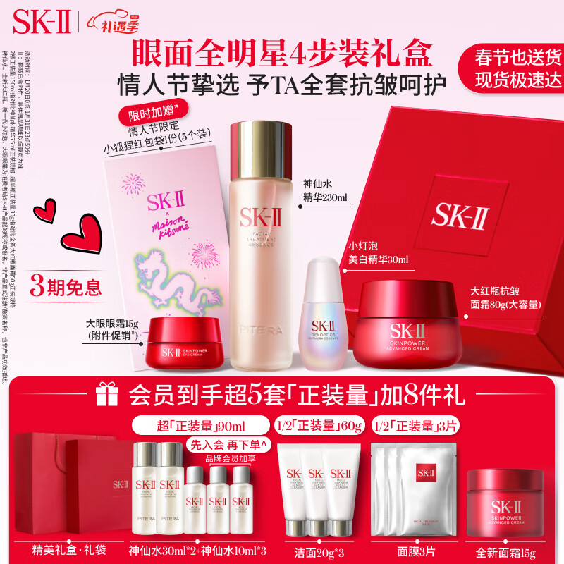SK-II神仙水230ml+全新面霜80g+小灯泡精华30ml+眼霜15g护肤套装化妆品价格:5040.00元!