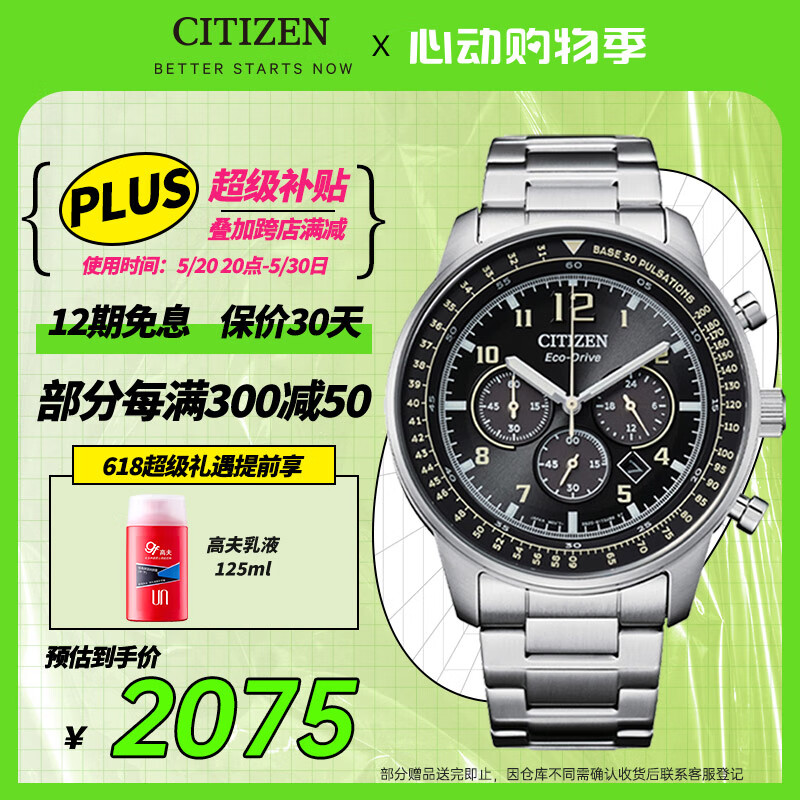 西铁城(CITIZEN)手表男日韩表FF系列光动能三眼盘钢带商务情人节礼物CA4500-83E价格:2275.00元!