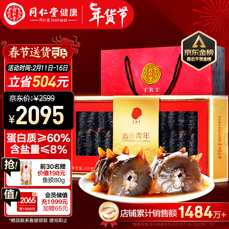 同仁堂(TRT)北京同仁堂大连淡干海参辽参100g28-42只海参干货过年礼盒高泡发价格:2299.00元!