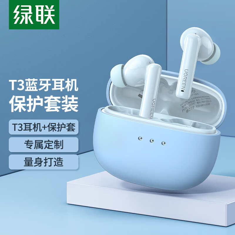 绿联HiTune T3无线蓝牙耳机保护套装 ANC主动降噪音乐耳机 通用苹果华为小米手机 90598+90750价格:183.00元!