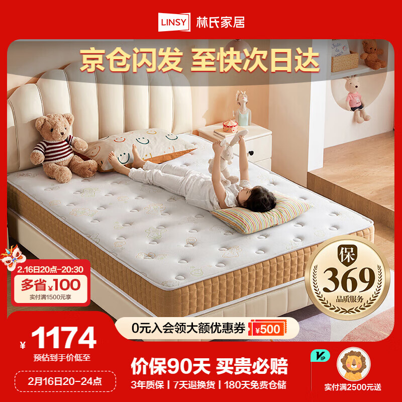 林氏家居京仓直送 青少年床垫儿童床垫子1.5米×2米弹簧进口椰棕双面可睡价格:2198.00元!