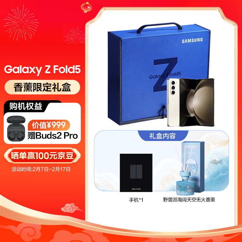 三星 SAMSUNG Galaxy Z Fold5 5G折叠手机 香薰限定礼盒 12GB+1TB 星河白价格:14999.00元!