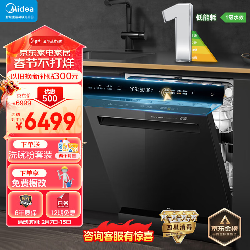 美的(Midea)15套嵌入式洗碗机GX2000【一键独立消毒 】105℃热风烘干 五臂飓风洗 双驱变频 新一级水效价格:12999.00元!