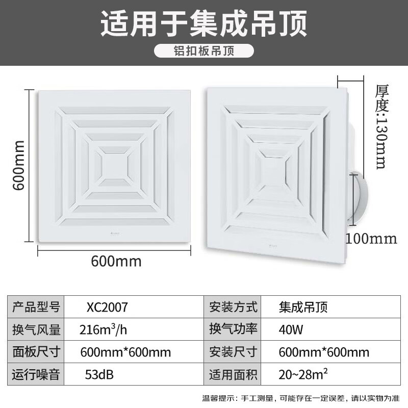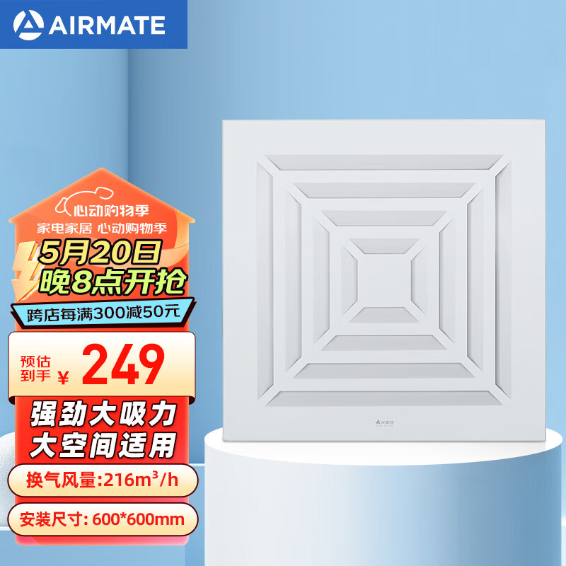 艾美特(Airmate )XC2007排气扇厨房卫生间排风扇换气扇集成吊顶600*600抽风机价格:249.00元!