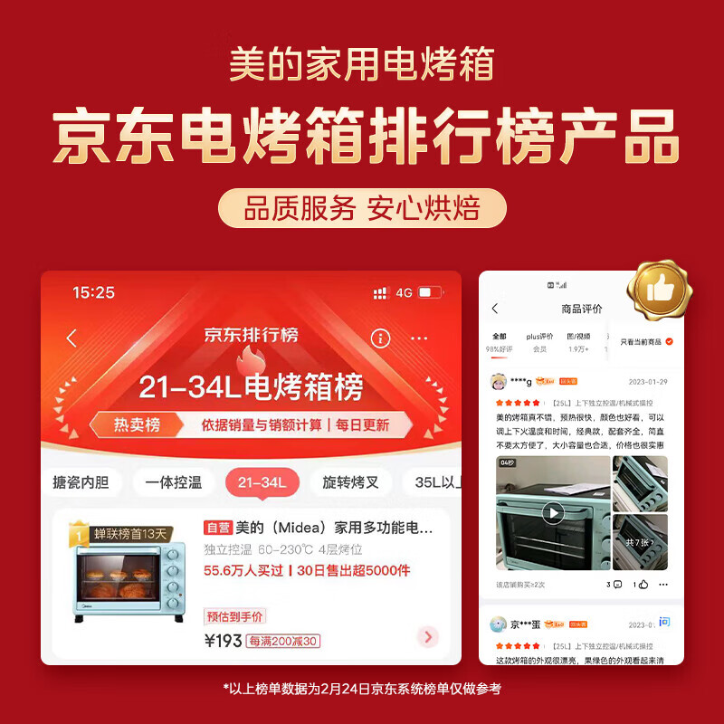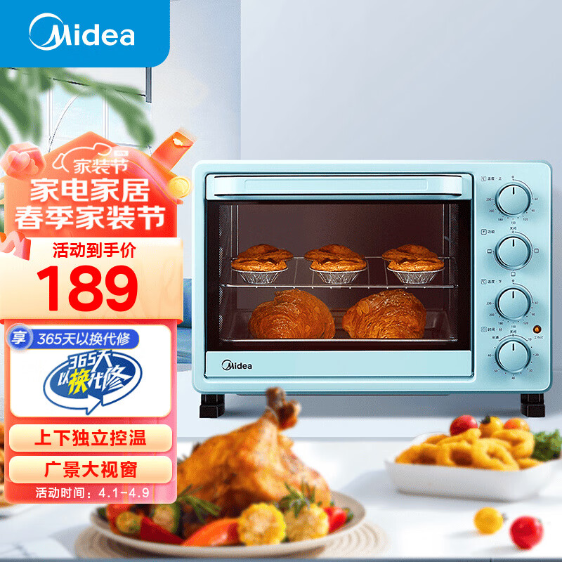 美的(Midea)家用多功能电烤箱 25升 机械式操控 上下独立控温 专业烘焙易操作烘烤蛋糕面包PT2531【仓库1】价格:187.00元!