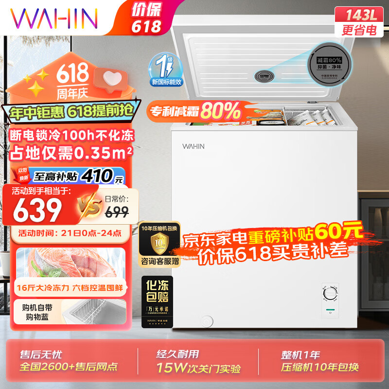 华凌 美的出品143升减霜家用冰柜 单温囤货冷藏冷冻转换小冷柜 一级能效节能低霜小冰箱BD/BC-143KHD价格:639.00元!