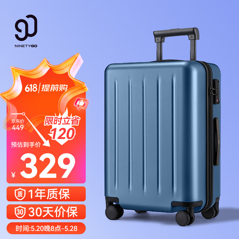 90分行李箱24英寸商务拉杆箱大容量旅行箱密码箱托运箱子多瑙河蓝色价格:319.00元!