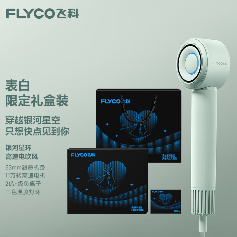 飞科(FLYCO)吹风机家用高速电吹风筒大功率负离子护发大风力速干便携学生宿舍风筒低噪音节日礼物FH6371 【水晶绿】表白礼盒价格:389.00元!