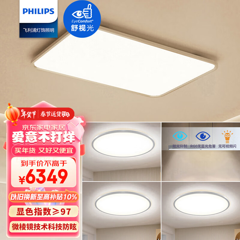 飞利浦(PHILIPS)全光谱护眼吸顶灯 超薄客厅灯现代简约 EyeCare 三室两厅套餐价格:6999.00元!