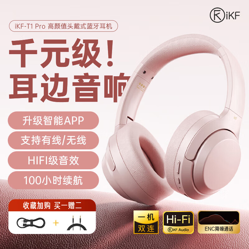 iKF T1 Pro头戴式蓝牙耳机无线有线手机电脑网课游戏超长续航耳麦降噪通用苹果小米手机新颜粉价格:129.00元!