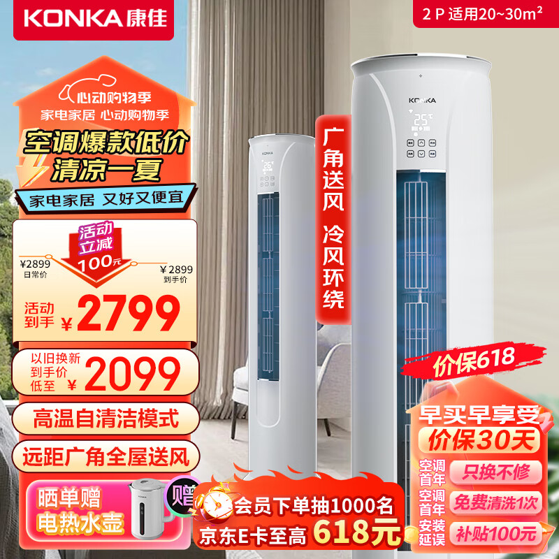 康佳(KONKA)2匹 新能效 第四代自清洁 一键节能 变频客厅空调 以旧换新 立式圆柱柜机 KFR-51LW/YC3价格:2798.00元!