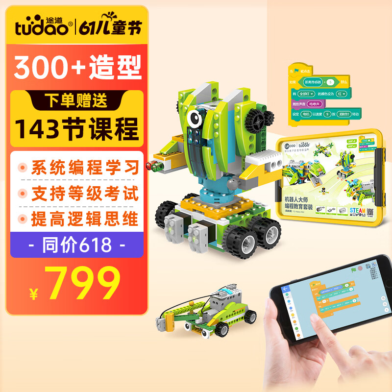 途道(tudao)机器人大师编程教育高级套装编程机器人六一儿童节礼物电动科教积木拼装steam早教儿童玩具5-12岁男女孩生日礼物价格:749.00元!