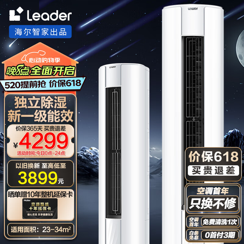 Leader海尔智家空调立式家用客厅大2匹新一级能效节能变频冷暖柜机自清洁空调KFR-50LW/02WDB81TU1[家电]价格:4299.00元!