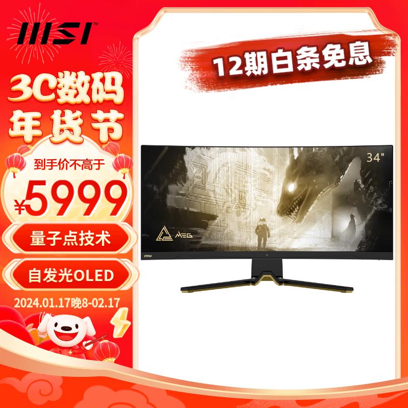 微星(MSI)34英寸 准4K 量子点 OLED 曲面屏 175Hz 0.1ms(GTG) 原生10Bit 电竞显示器 MEG 342C QD-OLED价格:7999.00元!