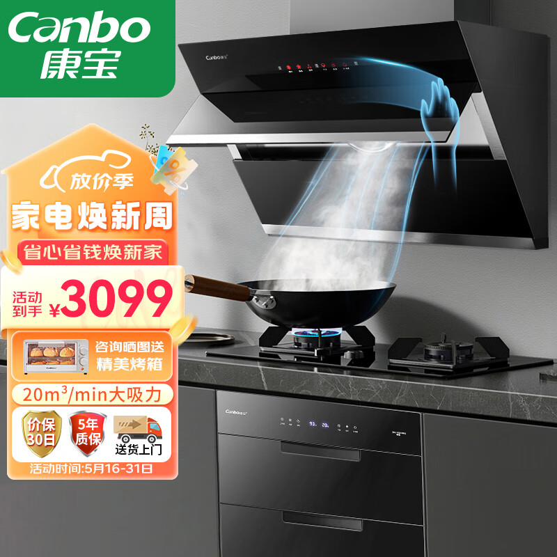 康宝(Canbo)油烟机灶具消毒柜套装 侧吸式抽油烟机套装 烟灶套装 消毒柜三件套 ONE+209X+323(天然气)价格:3099.00元!
