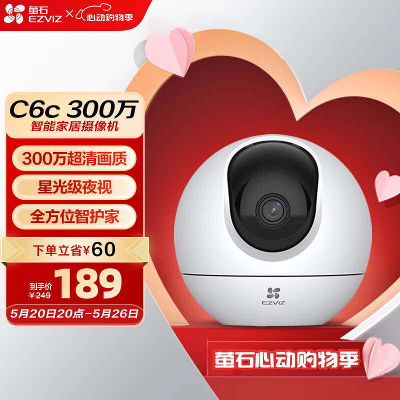 萤石(EZVIZ) C6c 2K星光版 300万超清 室内智能无线监控器家用摄像头 双向通话 手机远程 婴儿看护器价格:189.00元!