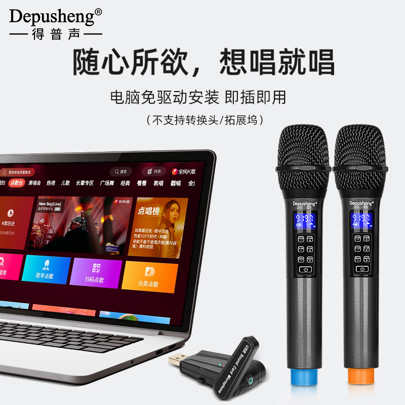 depusheng W4 USB无线麦克风领夹话筒电脑笔记本直播视频会议网课录音K歌降噪收音调频混响 W4专业USB一拖二无线话筒价格:299.00元!