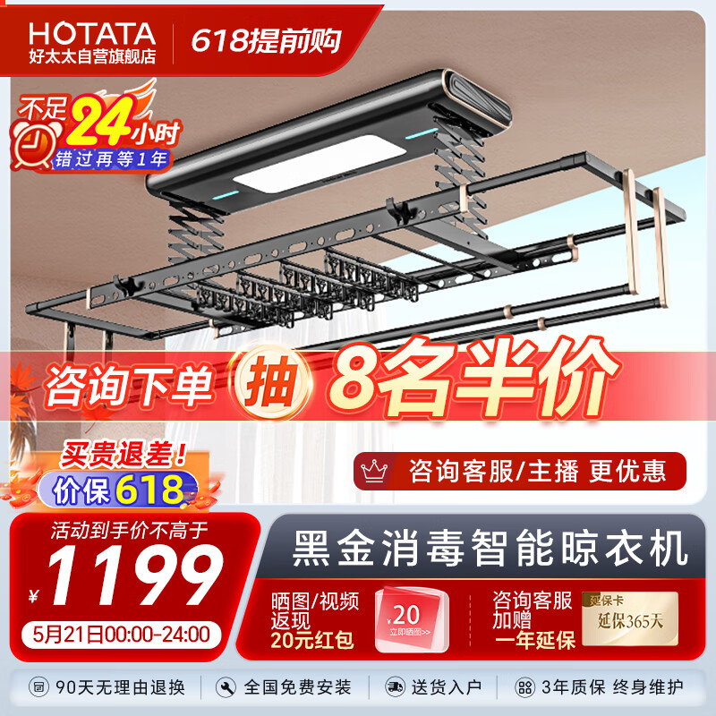 好太太(Hotata)电动智能晾衣架阳台升降晾衣杆消毒语音照明晒衣架D-3066S价格:1199.00元!