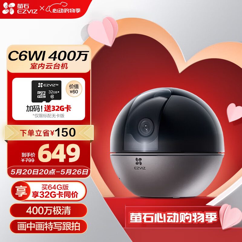 萤石(EZVIZ)C6WI智能400万高清无线云台家用手机监控摄像头 AI特写追踪 人脸识别 婴儿看护器价格:649.00元!
