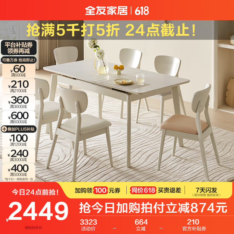 全友家居 餐桌现代简约岩板餐桌可伸缩功能餐桌吃饭桌子家具DW1120C价格:3323.75元!