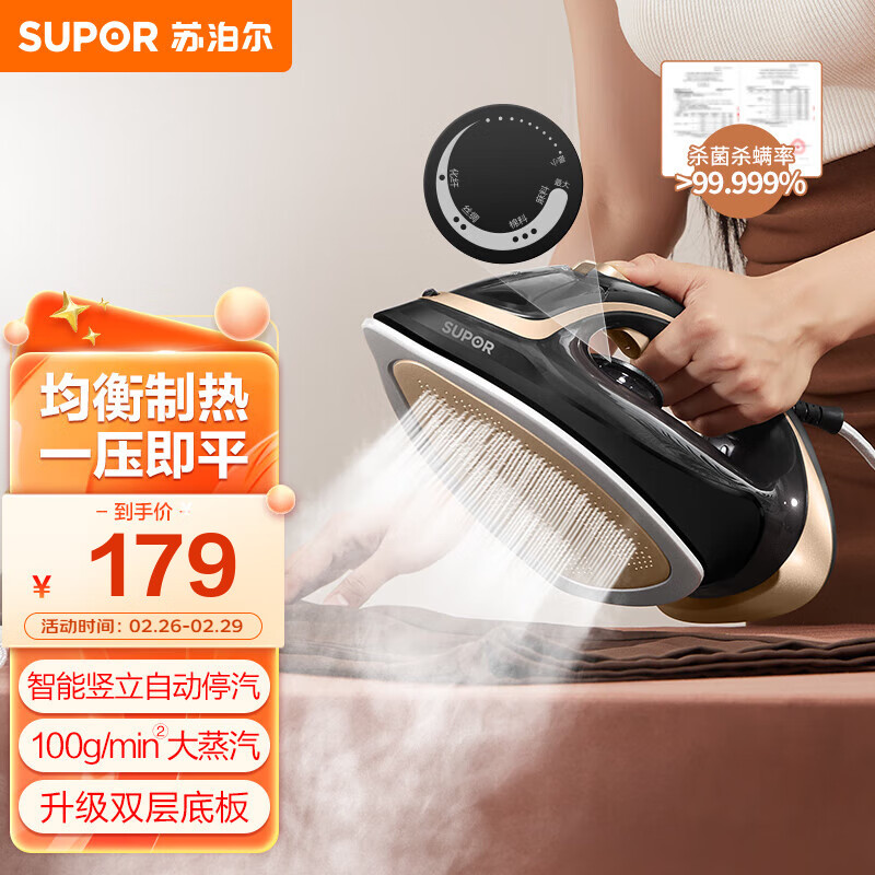 苏泊尔(SUPOR)蒸汽电熨斗烫斗家用运斗云斗便携式手持喷气式迷你家电旅行挂烫机电五档控温 三八妇女节礼物 ESP-302A价格:299.00元!