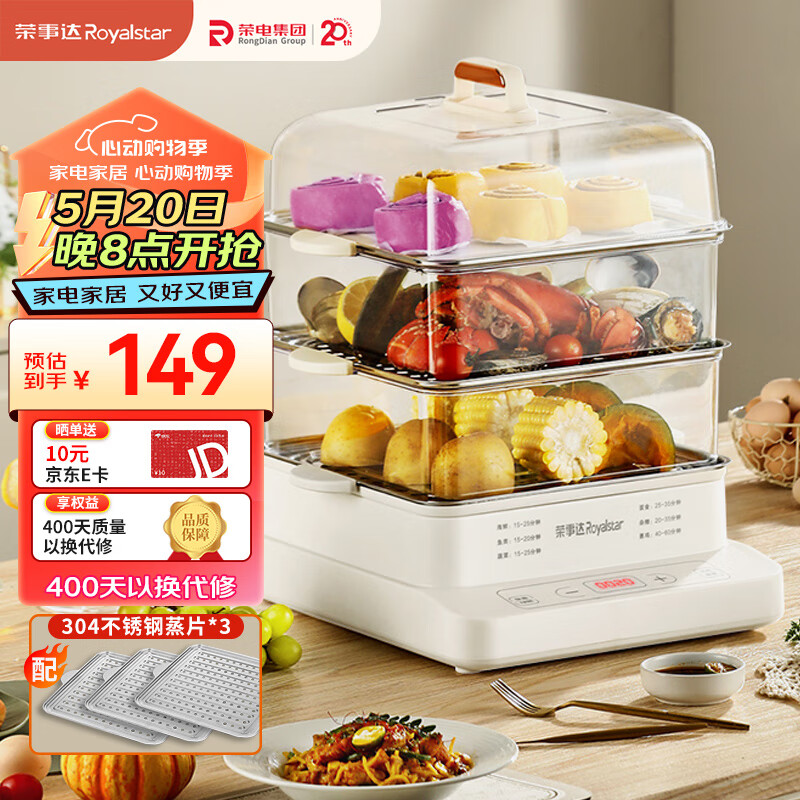 荣事达(Royalstar)电蒸锅家用蒸包子锅蒸蛋多功能可定时分体式18升大容量蒸锅电蒸笼RS-ZG818T价格:139.00元!