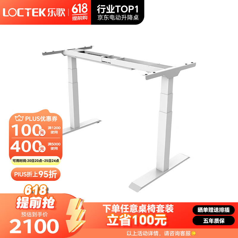 乐歌电动升降电脑桌站立办公学习桌家用写字书桌 E5-N雅白桌腿价格:2100.00元!