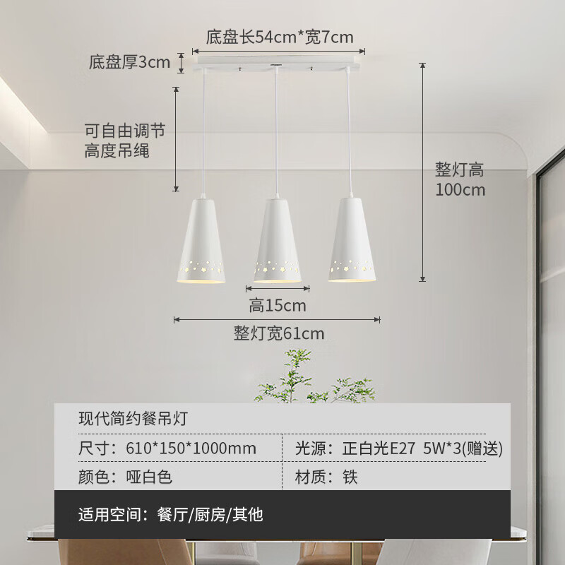 雷士(NVC)LED餐吊灯餐厅吧台灯具现代简约 白色餐吊 NDBD03A/2-005价格:265.00元!