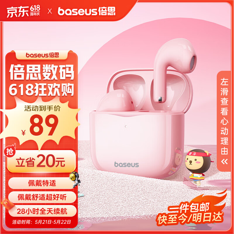 倍思E3 真无线蓝牙耳机 半入耳式舒适 游戏吃鸡音乐运动适用于苹果华为小米oppo 粉色价格:109.00元!