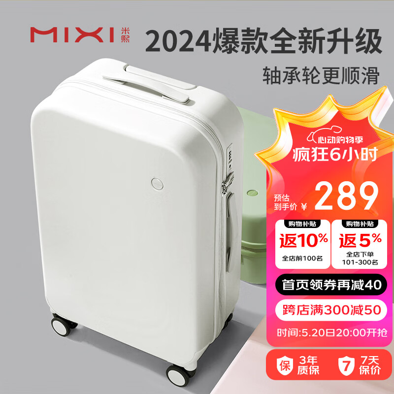 米熙高颜值登机箱男拉杆箱子行李箱飞机旅行箱包密码箱女白色20英寸小价格:469.00元!