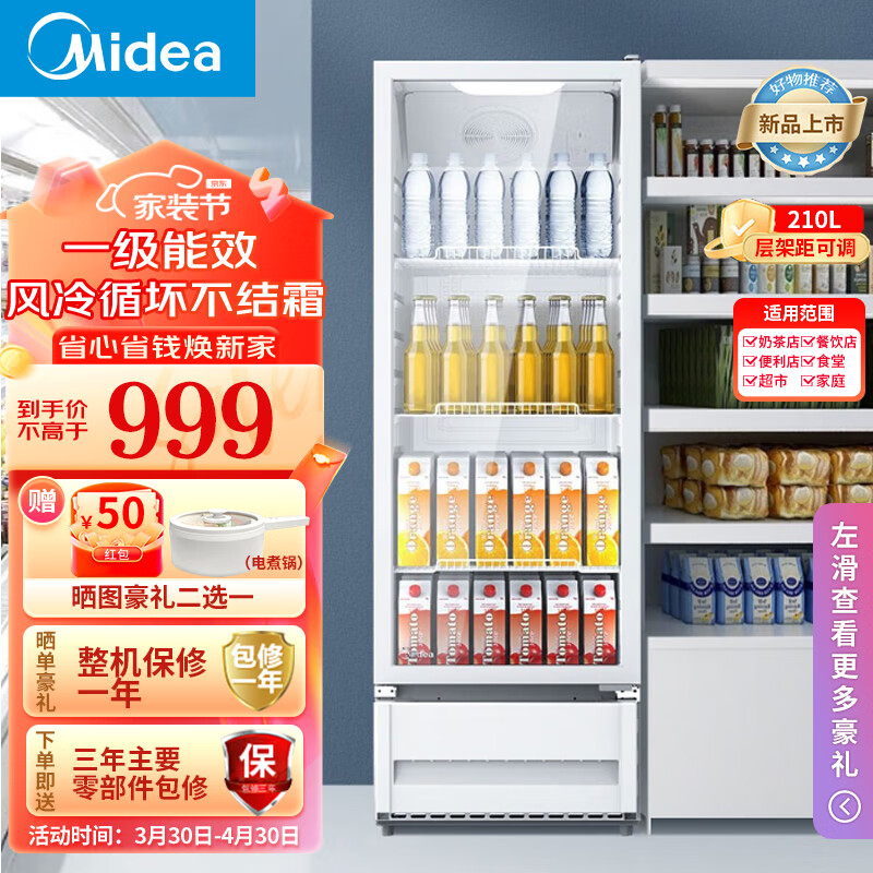 美的(Midea)展示柜冷藏保鲜柜 210升大容量立式单门商用冷柜 便利店餐馆超市啤酒饮料柜 一级能效 ML-208DGE价格:1099.00元!