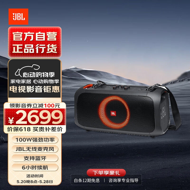 JBLPARTYBOX ON-THE-GO 音响 音箱 家庭KTV 卡拉OK套装 便携音箱 广场舞音箱 麦克风 489*244.5*224mm价格:2799.00元!