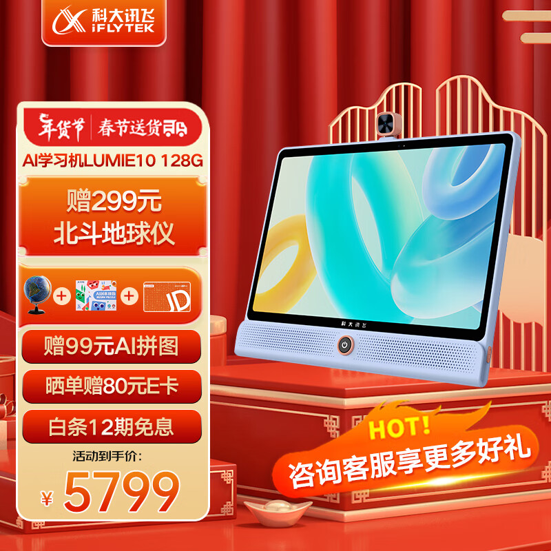科大讯飞AI学习机LUMIE10 (6+128GB)星火认知大模型 全龄段 大屏护眼 学生平板 英语学习 16英寸价格:5999.00元!