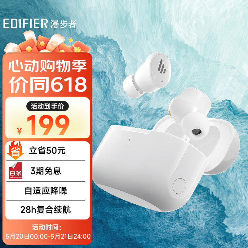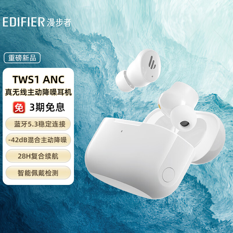 漫步者(EDIFIER)TWS1 ANC 真无线主动降噪蓝牙耳机 蓝牙5.3 入耳式混合主动降噪 适用苹果小米华为 霜凝白价格:229.00元!