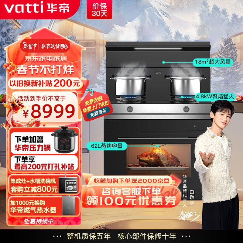华帝(VATTI)集成灶蒸烤一体 集成灶一体式 蒸烤箱一体机 模块化设计 家用蒸烤箱燃气灶i3023Y天然气价格:8999.00元!