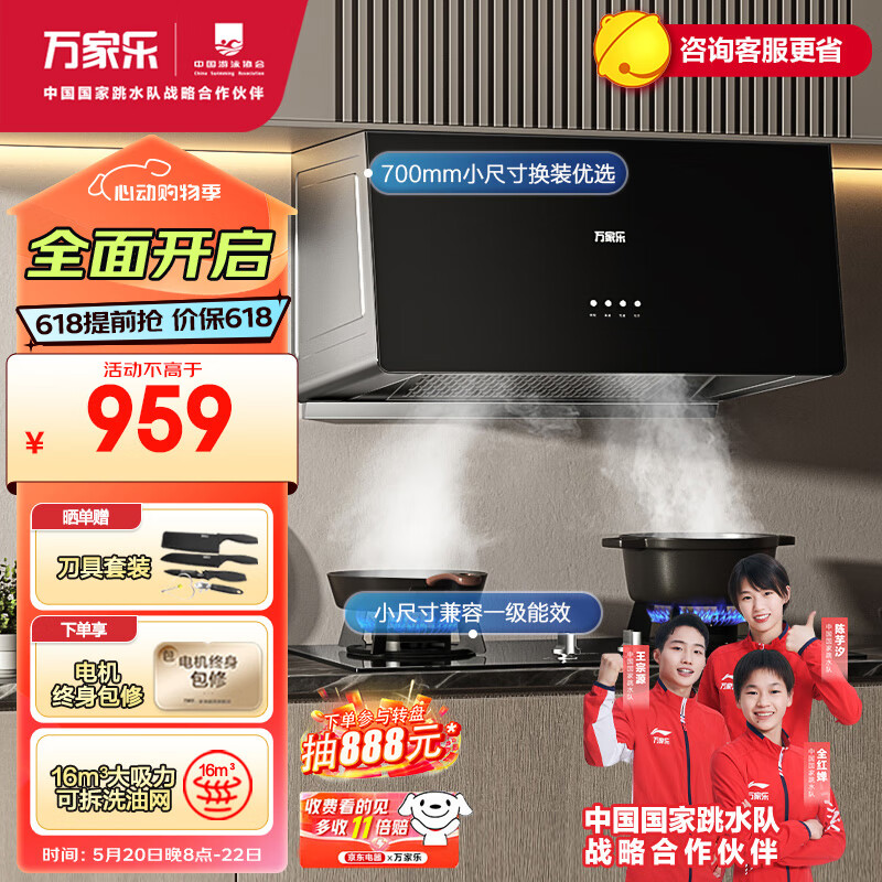 万家乐 抽油烟机 中式油烟机灶具套装16立方/min小尺寸大吸力深腔拢烟小户型烟灶套装AZ1+KA031B天然气价格:959.00元!