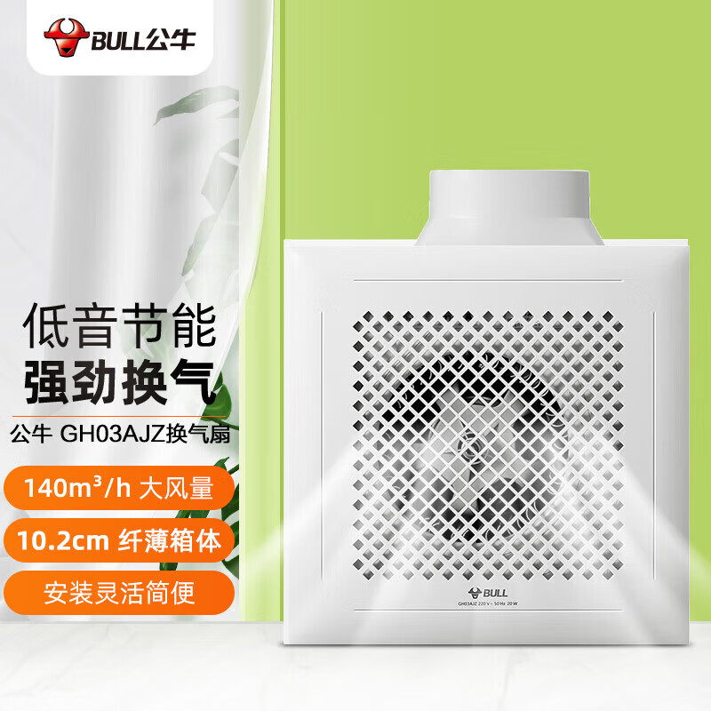 公牛(BULL)排气扇GH03AJZ换气扇【1级能效,20W功率】厨房卫生间浴室大风量价格:208.00元!