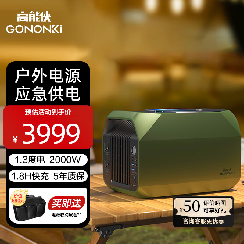 高能侠2000w大功率1.3度电快充220v户外电源车载露营便携应急储能绿色价格:6799.00元!