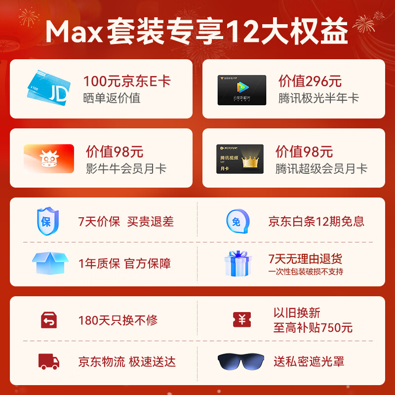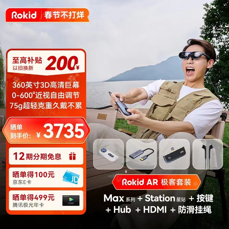 ROKID Max若琪智能AR眼镜极客套装3D游戏电影360英寸巨幕DP直连ROG掌机iPhone15系列和Mate60非VR一体机价格:3835.00元!