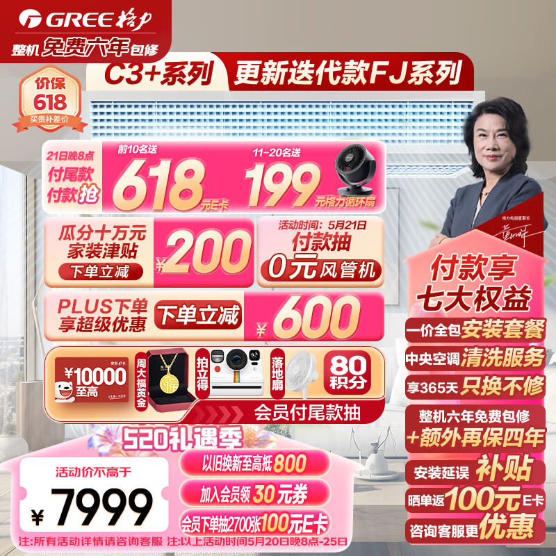 格力(GREE)中央空调 FJ风管机一拖一 3匹家用嵌入式空调 二级能效FJR7.2Pd/Cb3Nh-N2京仓派送(一价全包)价格:7999.00元!