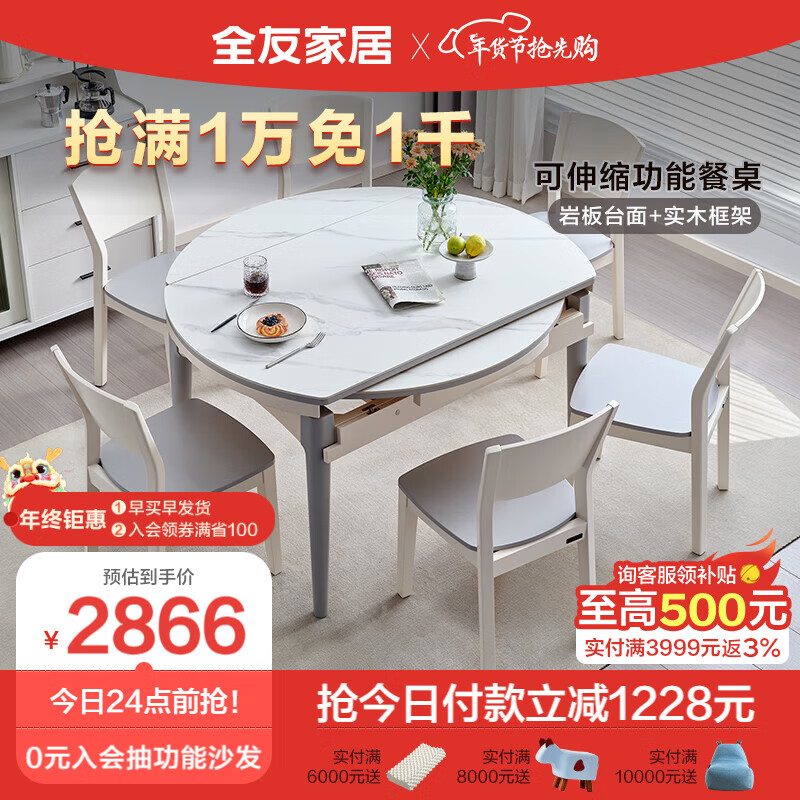 全友家居 餐桌椅 现代简约实木框架餐桌椅可伸缩折叠岩板餐桌DW1028K价格:4094.29元!