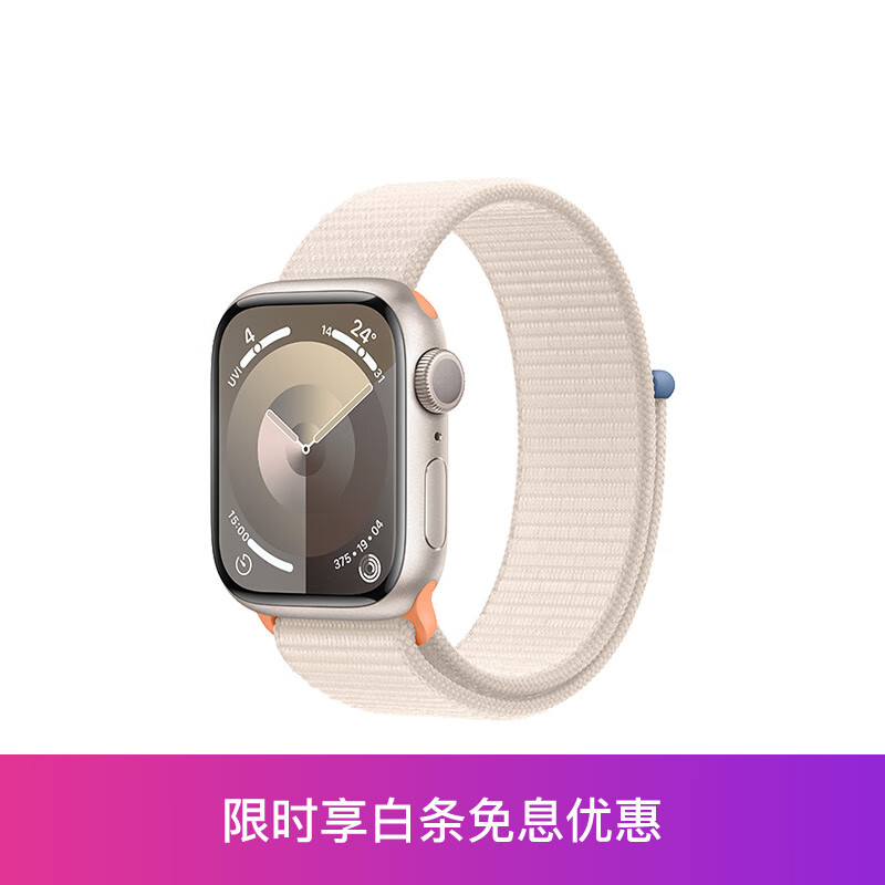 Apple/苹果 Watch Series 9 智能手表GPS款41毫米星光色铝金属表壳 星光色回环式运动表带 S9 MR8V3CH/A【免息版】价格:2999.00元!