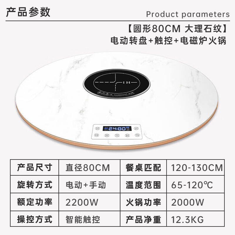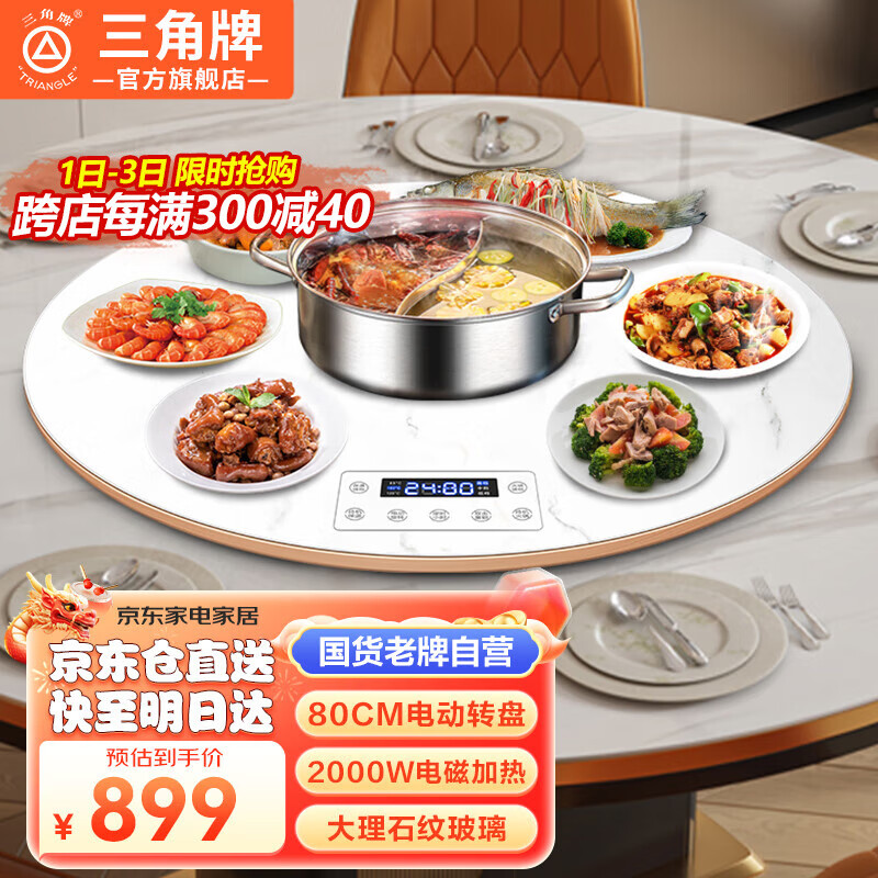三角牌(Triangle) 暖菜板热菜板加热板饭菜保温板电磁炉多功能带火锅暖菜转盘自动旋转饭菜餐桌 电动转盘+电磁炉 【大理石纹80CM】价格:1119.00元!