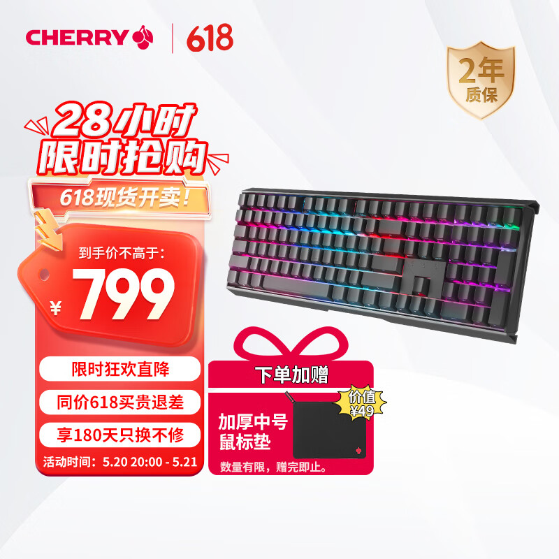 CHERRY樱桃 MX3.0S无线键盘 机械键盘 游戏键盘 电脑键盘 蓝牙有线三模 RGB灯效 铝合金外壳 黑色红轴价格:899.00元!