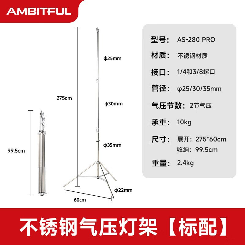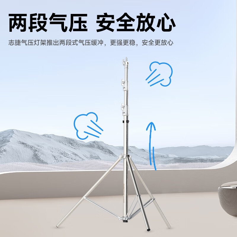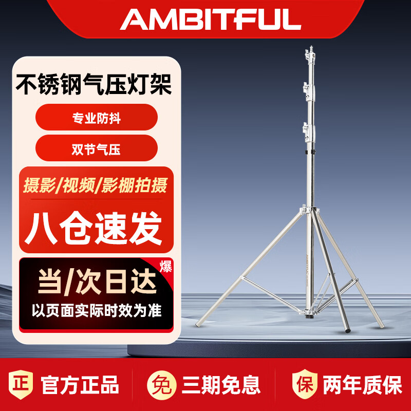 AMBITFUL志捷 2.75米气压灯架不锈钢大承重三脚架适用摄影灯补光灯机顶灯直播灯通用支架价格:168.00元!
