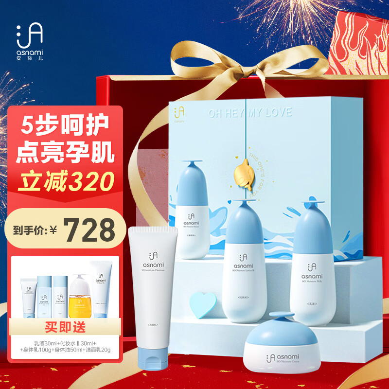 asnami安弥儿孕妇护肤化妆品海茴香补水保湿修护补水滋润护肤五件套礼盒价格:1048.00元!