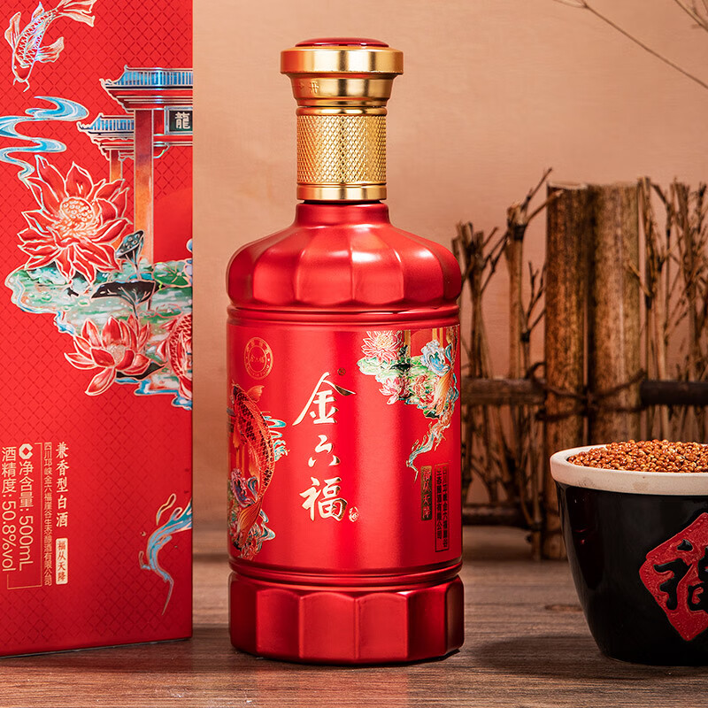 金六福 福从天降 喜酒宴请 50.8度 500ml*6瓶 整箱装 兼香型白酒价格:398.00元!