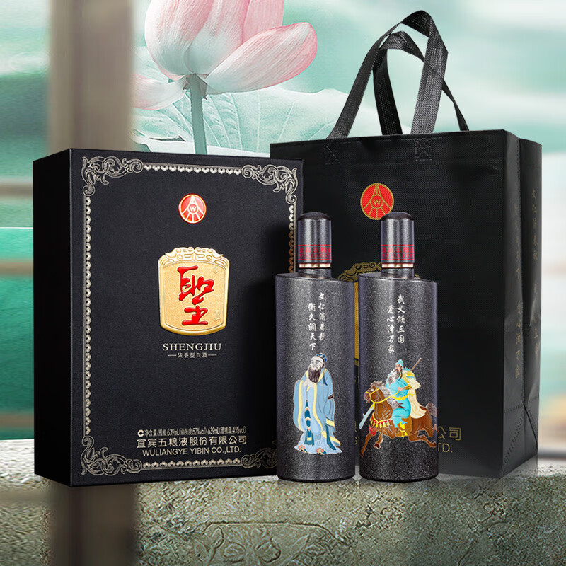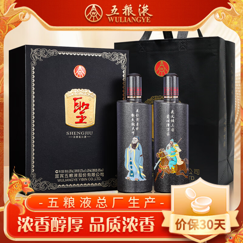 五粮液股份 圣酒文武浓香型白酒52度+45度639ml*2瓶礼盒端午节送礼价格:199.00元!