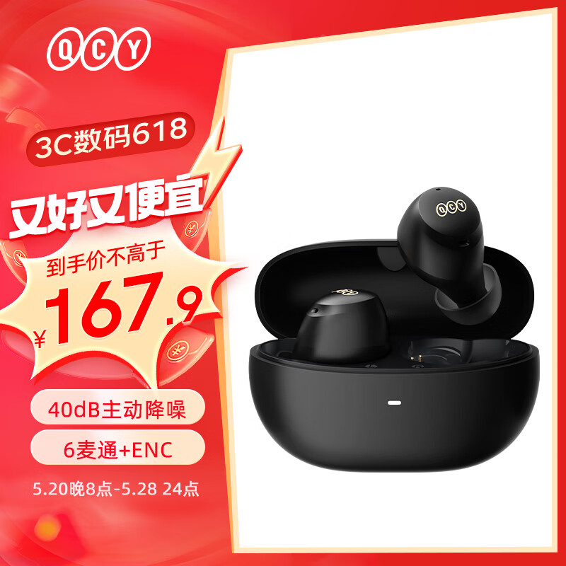 QCY ArcBuds 真无线蓝牙耳机主动降噪入耳豆状游戏低延迟通话降噪运动适用全部手机 黑色价格:167.90元!
