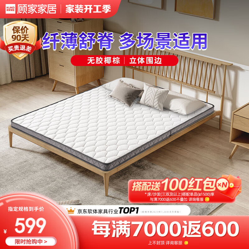 顾家家居床垫可折叠环保天然椰棕床垫 5cm M0063 120*200*5价格:599.00元!
